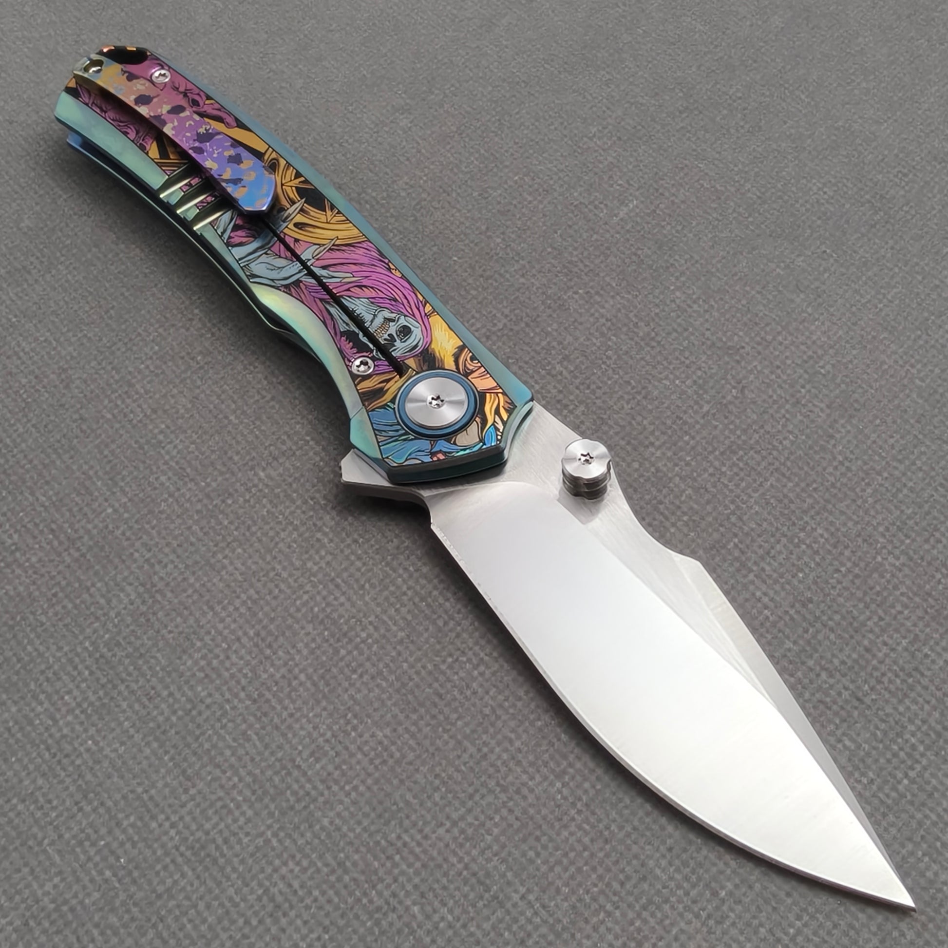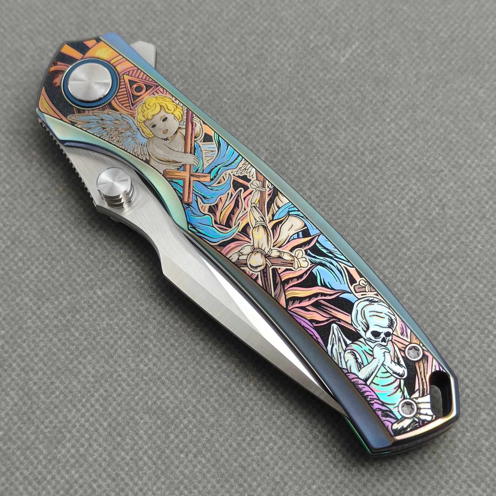 Vorixn "Halo" Flipper & Thumb Stud Knife Titanium-Engraved Anodized Coloring Handle (3.7"10Cr15CoMo Blade) KB078