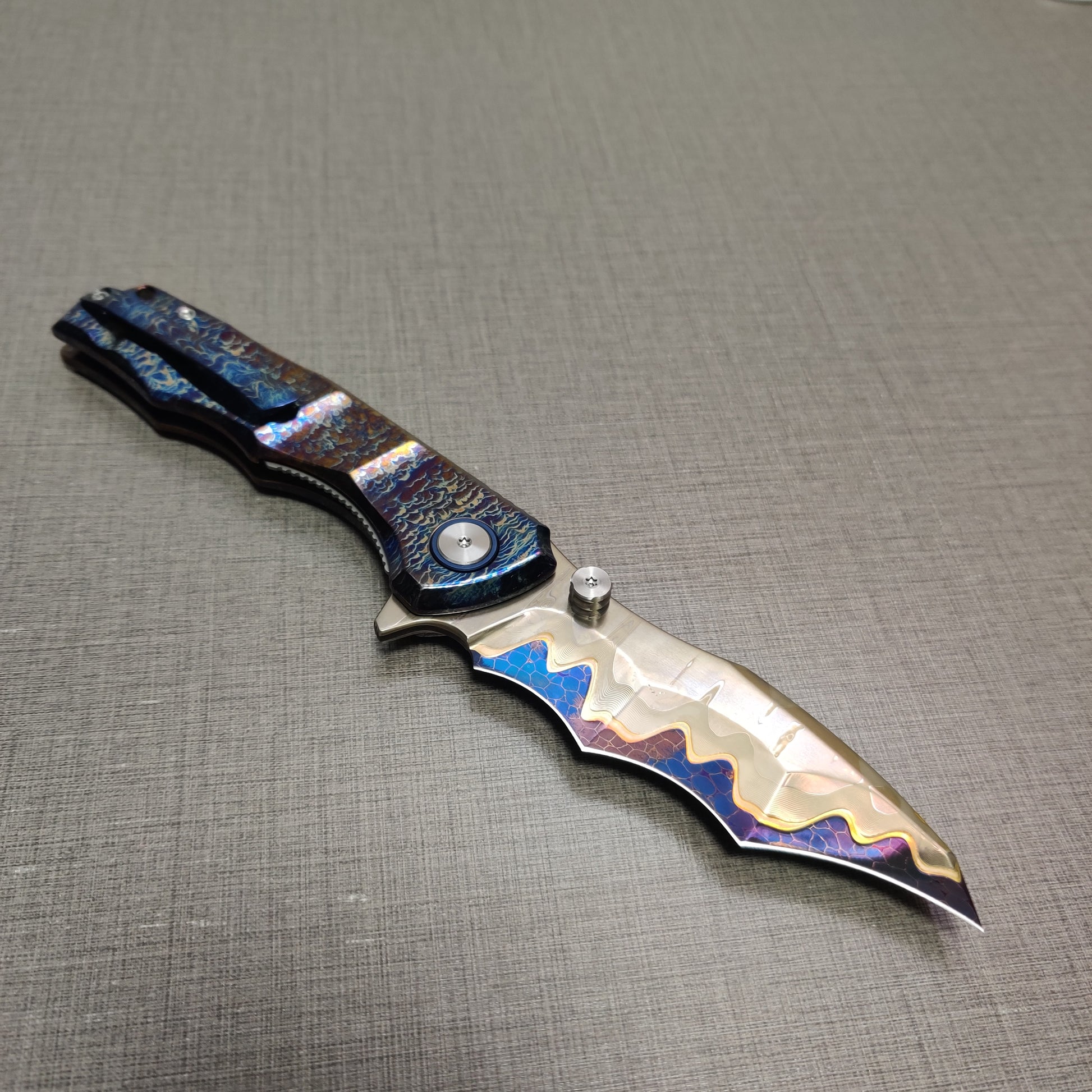 VORIXN "Drakescale" Flipper & Thumb Stud Knife Titanium Hand-Flamed Handle (3.6" Damascus Blade) KB057 / KB058