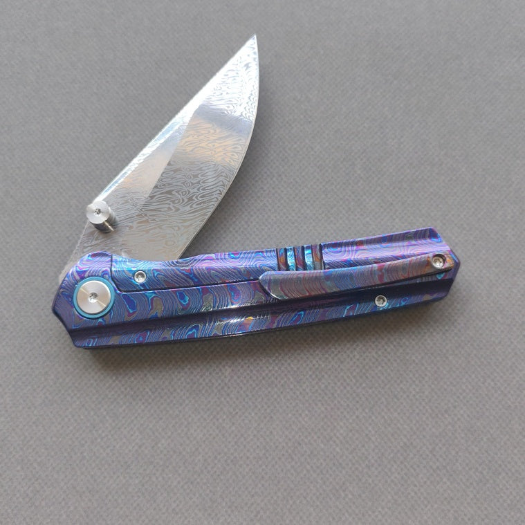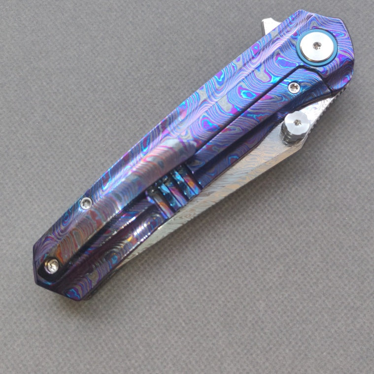 VORIXN "Lumin" Flipper & Thumb Stud Knife Flamed-Zirconium Handle (3.6" Damascus Blade) KB065