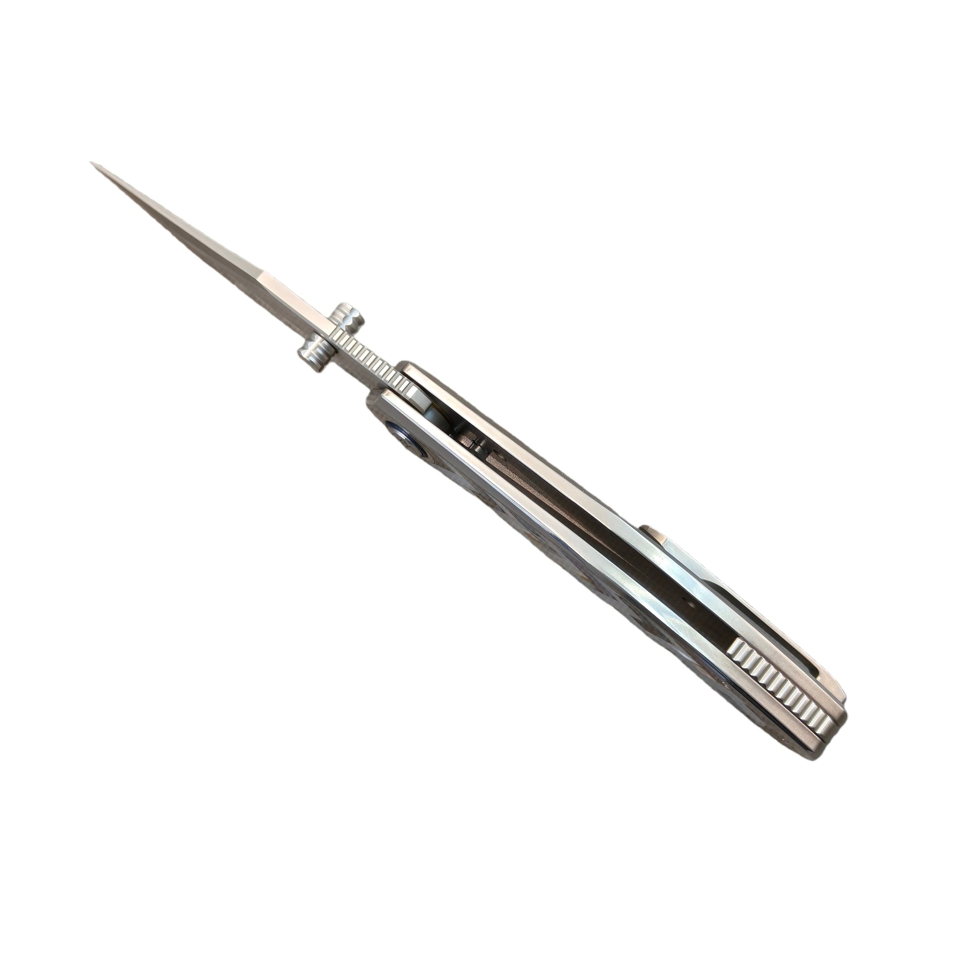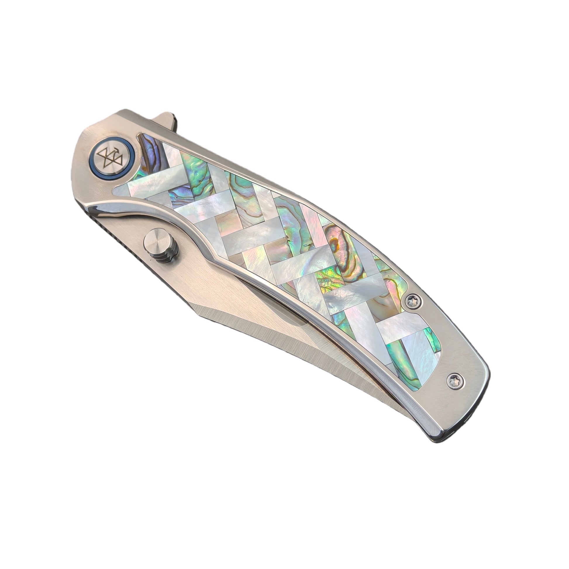 Handle Color/Finish: Precision shell inlay on a titanium handle, Colorful